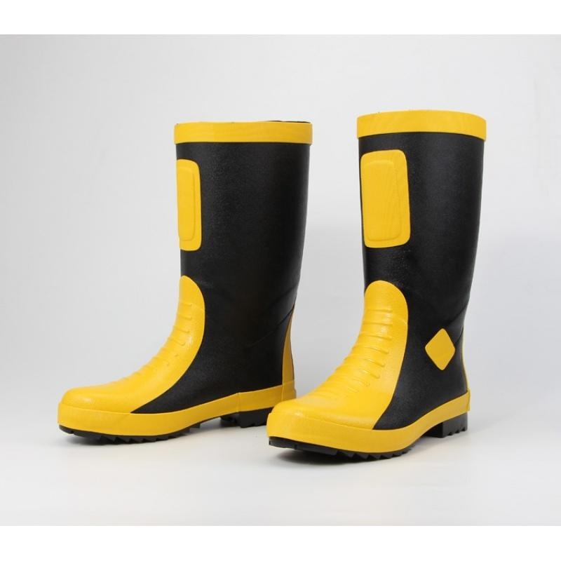 消防員滅火防護靴主要由大底和靴幫兩部分組成,主題顏色為黑色,配以黃色的圍條、沿條等。整靴均采用多層結構。