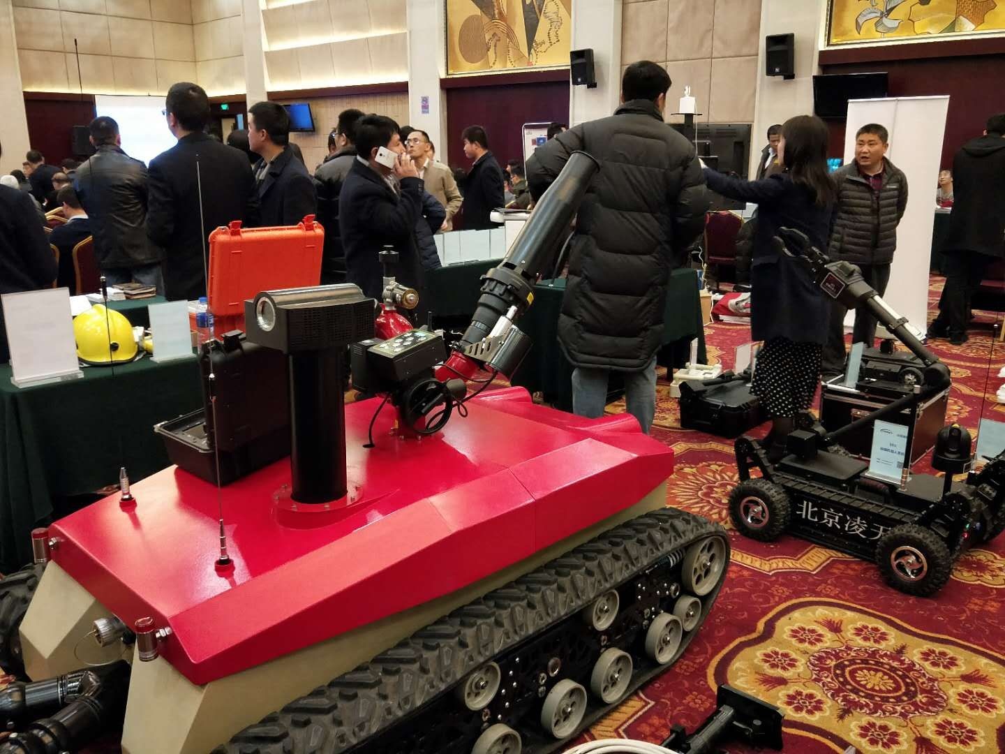 需求牽引,貼近實戰(zhàn),科技強(qiáng)警,科技興安,科學(xué)救援,用科技提北京城市安全水平,由中關(guān)村管委會主辦的中關(guān)村智慧公共安全新技術(shù)新產(chǎn)品供需對接會18號在北京舉行,北京市公安局、消防局、安監(jiān)局、市屬高校、市屬國企及區(qū)縣政府部門的80余家用戶單位200余人共同參加了活動,現(xiàn)場氣氛熱烈,供需雙方都有收獲。北京凌天主要負(fù)責(zé)人作《智慧公共安全關(guān)鍵技術(shù)裝備》的專題報告,向參會專家介紹了北京凌天將機(jī)器人,人工智能,物聯(lián)網(wǎng)技術(shù)應(yīng)用于公共安全的最新技術(shù)成果。來自警保,特警,消防后勤裝備,安監(jiān)科技規(guī)劃等使用部門的專家,對消防滅火偵察機(jī)器人,全地形排爆機(jī)器人,消防偵察機(jī)器人,應(yīng)急救援快速部署系統(tǒng),安監(jiān)巡邏車,安全監(jiān)管立體化預(yù)警預(yù)測系統(tǒng)等表示濃厚興趣!