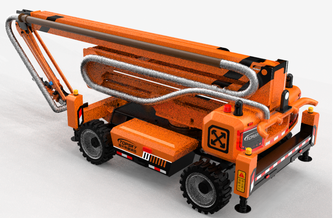 具有液壓調平支腿,臂架作業時保證整機水平,防止發生傾翻,以及支腿安全報警,車體傾斜報警,舉升避障、舉升限制、上下互鎖、風速報警等安全保護功能,進一步提升機器人舉高噴射作業安全性。