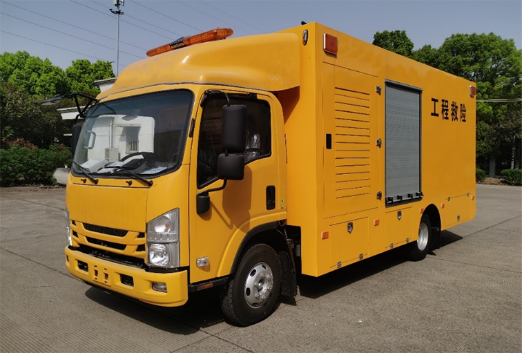 大流量排澇車(3000m3),是在慶鈴二類汽車底盤的基礎上,安裝一體式車廂并配置柴油發電機組、大流量便攜式潛水泵及控制系統、照明系統等設備改裝成型的專項作業車。